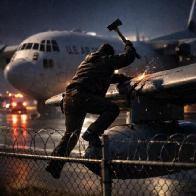 அமெரிக்க ராணுவத்தின் விமானத்தை ஒரு நபர் தாக்கியுள்ள சம்பவம் பல்வேறு விவாதங்களை ஏற்படுத்தியுள்ளது.